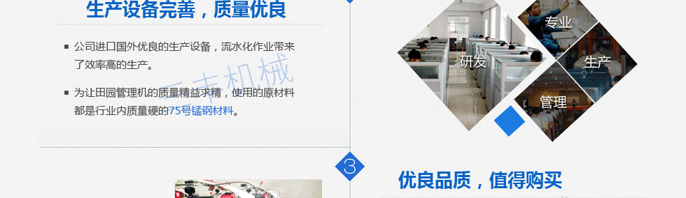公司堅持綠色環(huán)保、智能制造的目標定位,大力弘揚工匠精神,微耕機 以具有豐富實踐經(jīng)驗的高級工程師為主體的技術(shù)管理隊伍。